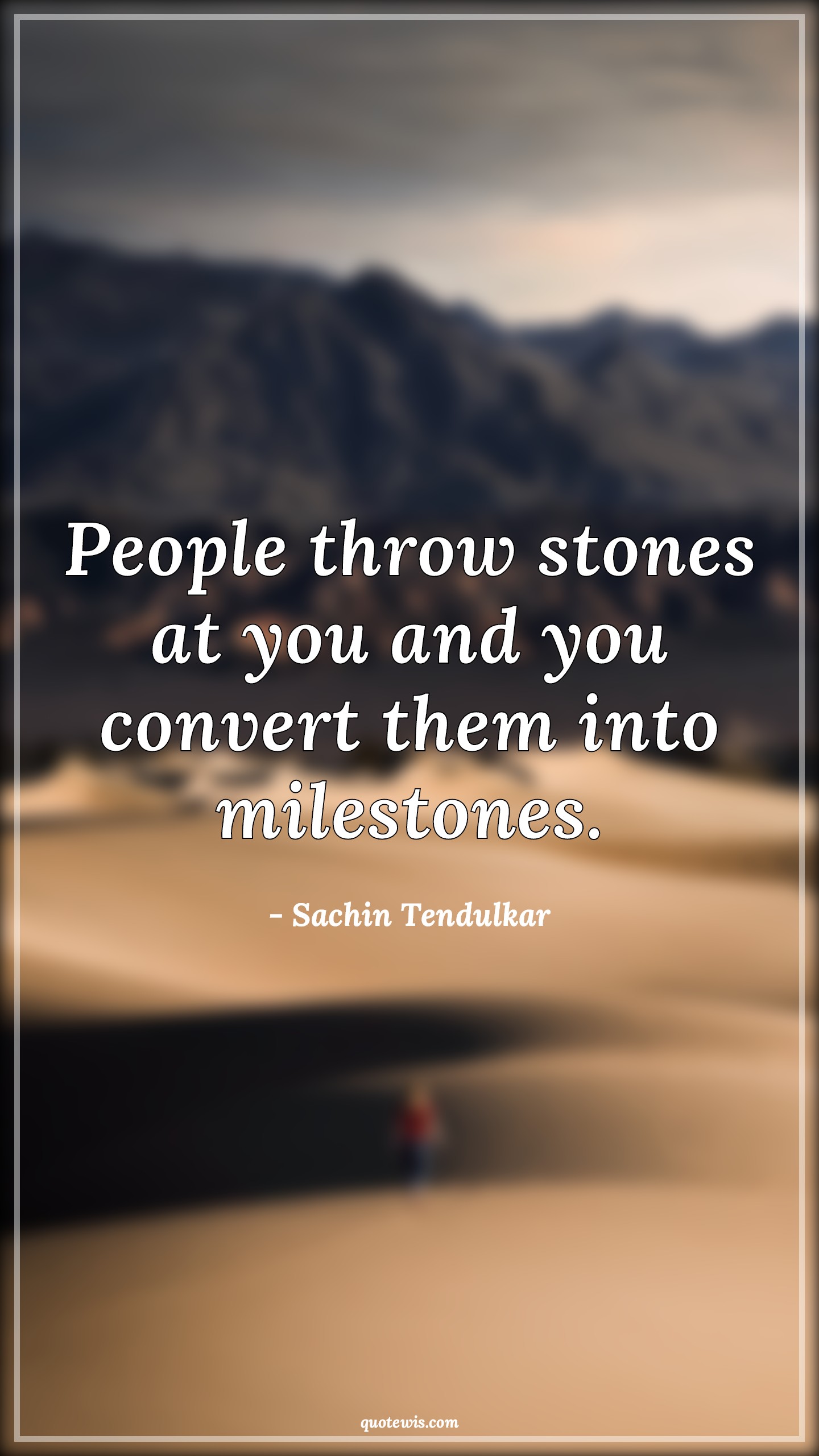 People throw stones at you and you convert them into milestones.